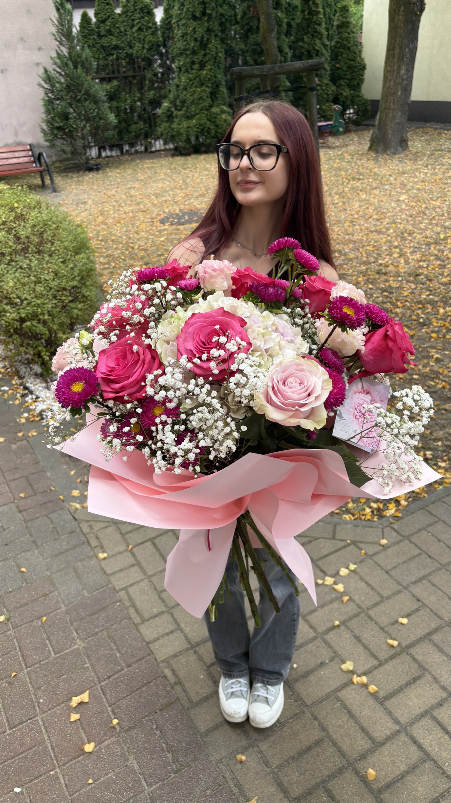 Bukiet kwiatów mieszanych różowo-amarantowych