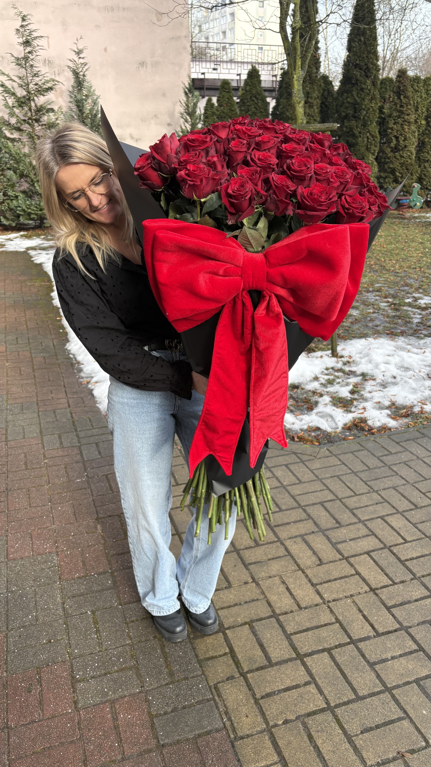 Bukiet Premium z 39 czerwonych róż z dużą welurową kokardą