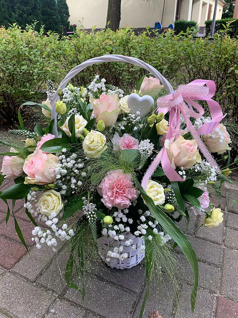 Kosz kwiatów mieszanych „Różowa fantazja”